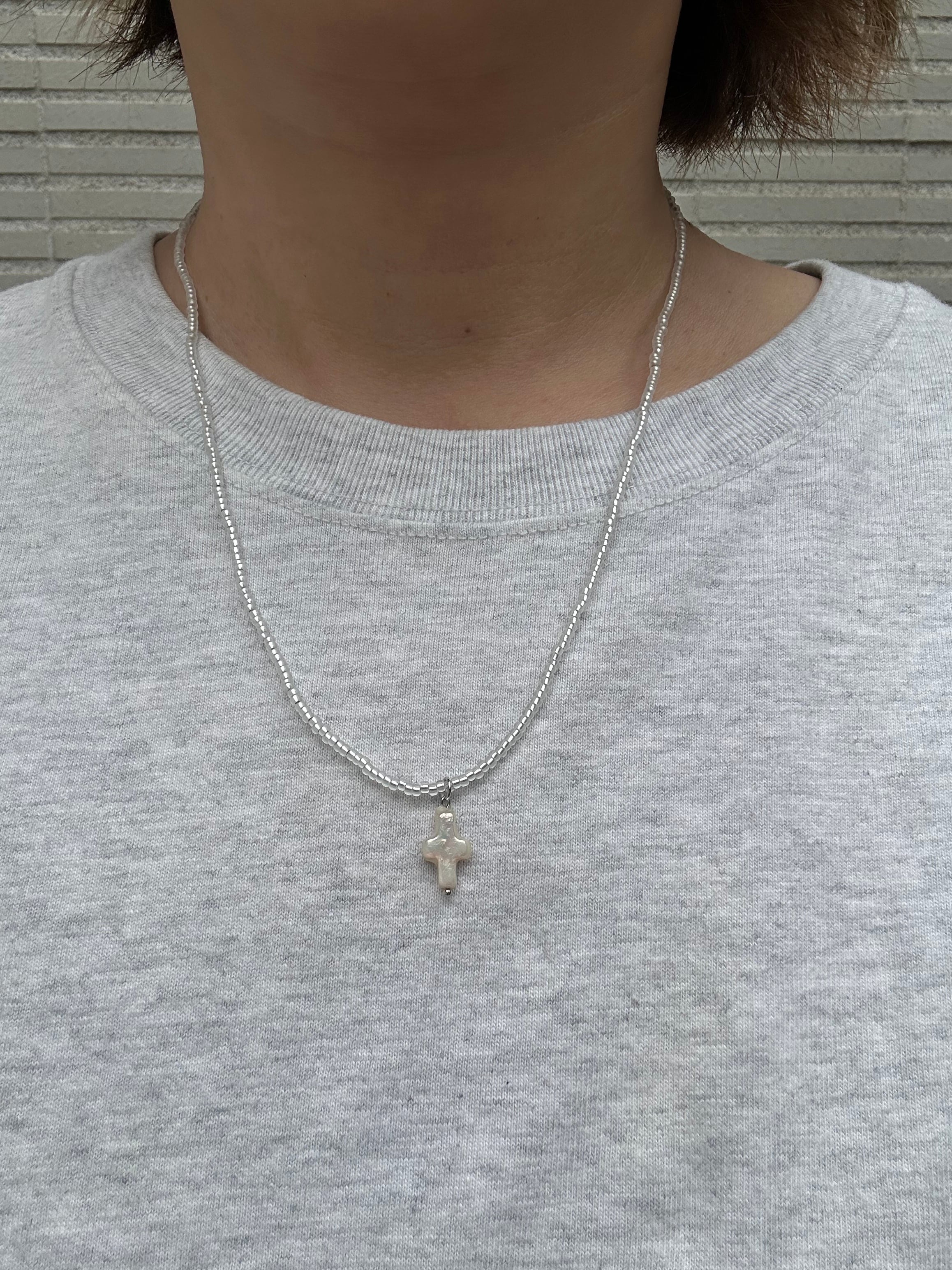 小さめのクロス型淡水パールをトップにしたビーズネックレスです。