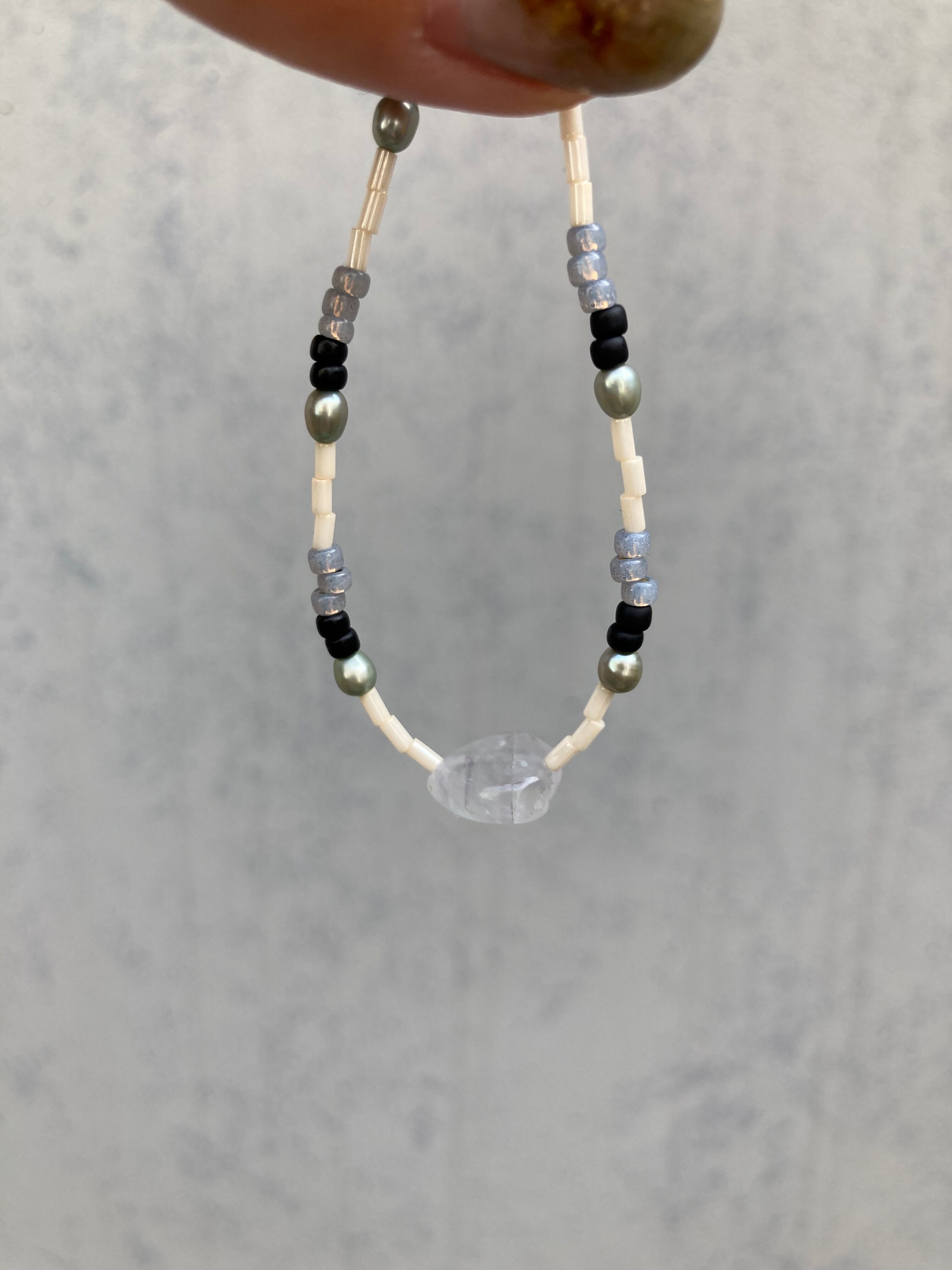 ブレスレットC(ハートフローライト+淡水パール/シャンパングリーン+ビーズ/パールホワイト、マッドブラック、ブルー)