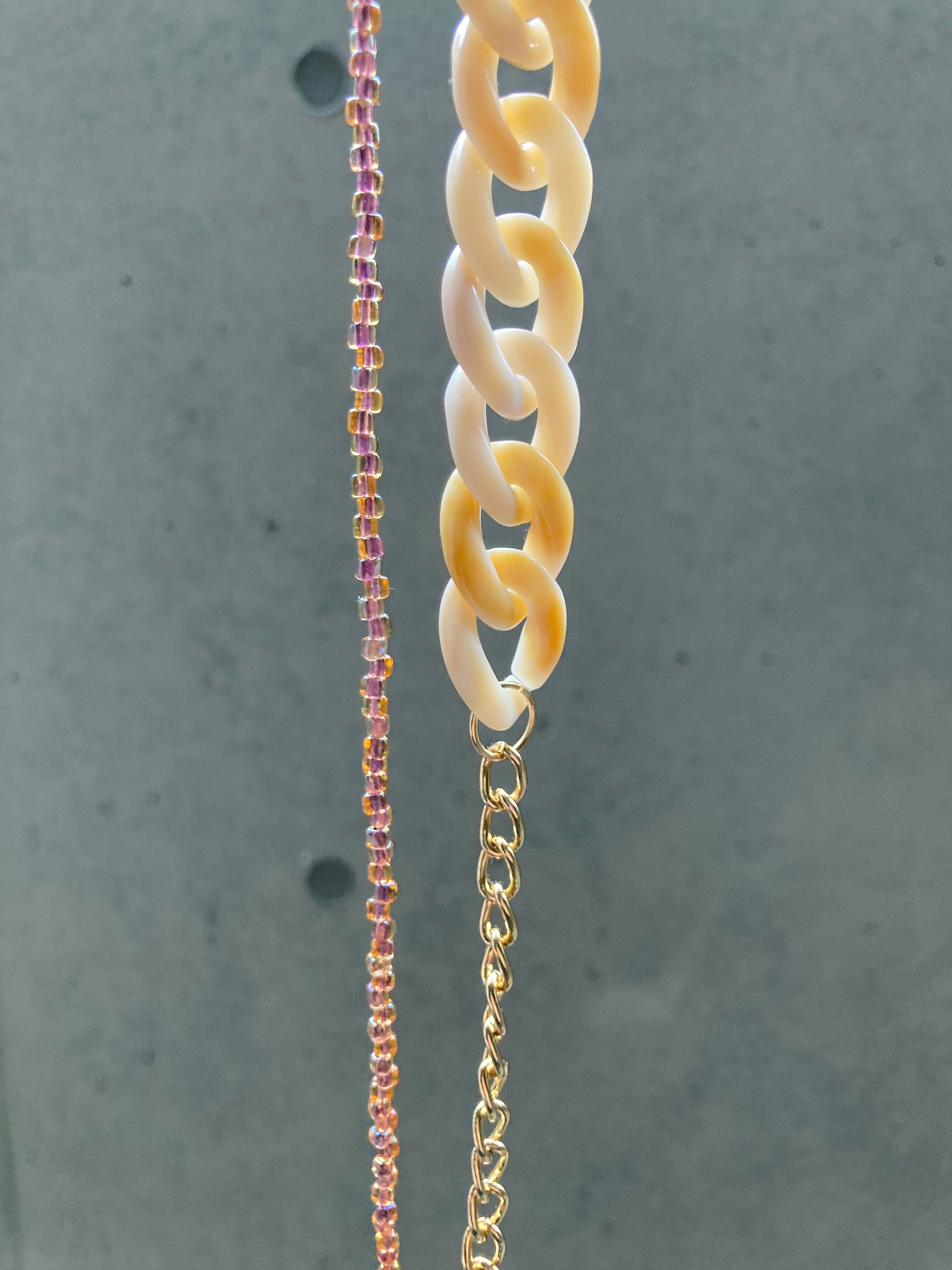 マスクストラップX(アクリルチェーン/ベージュマーブル+チェーン/ゴールド+ビーズ/レインボーカラー)