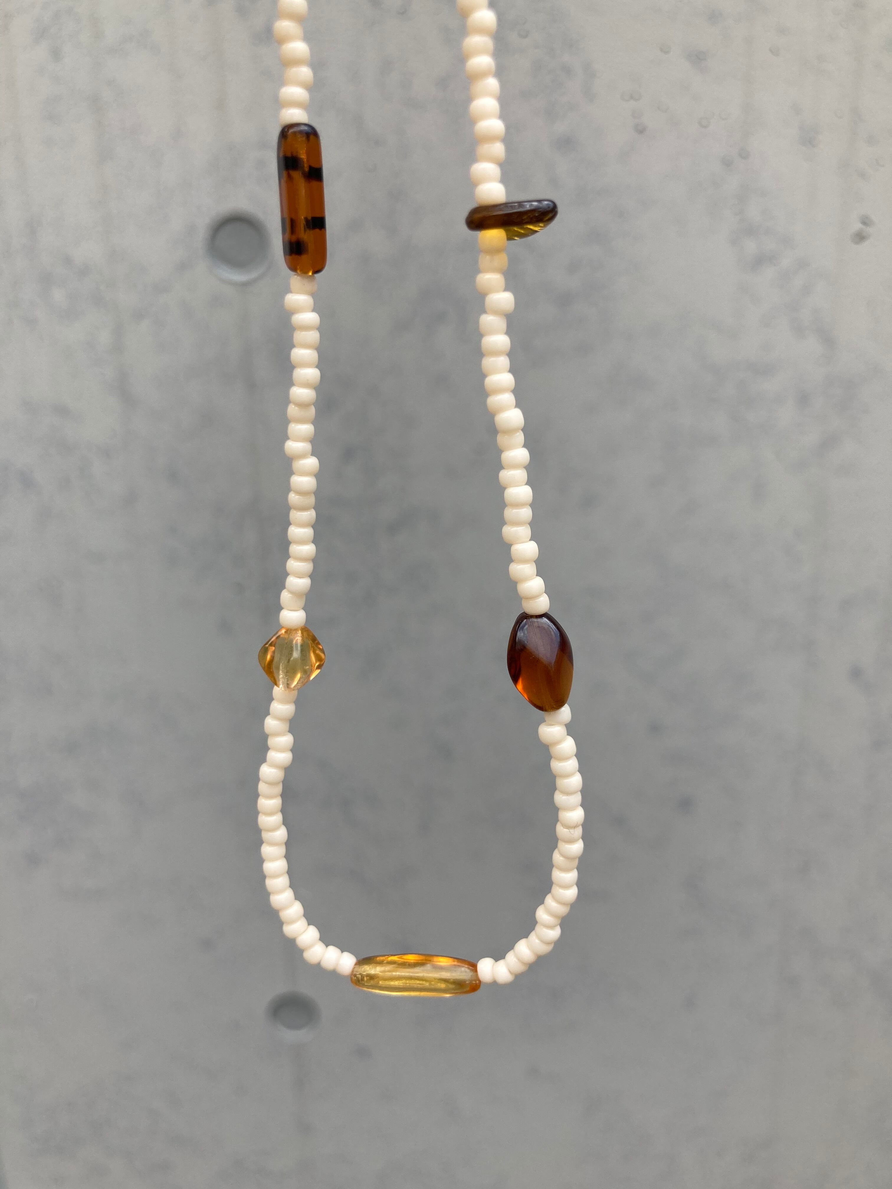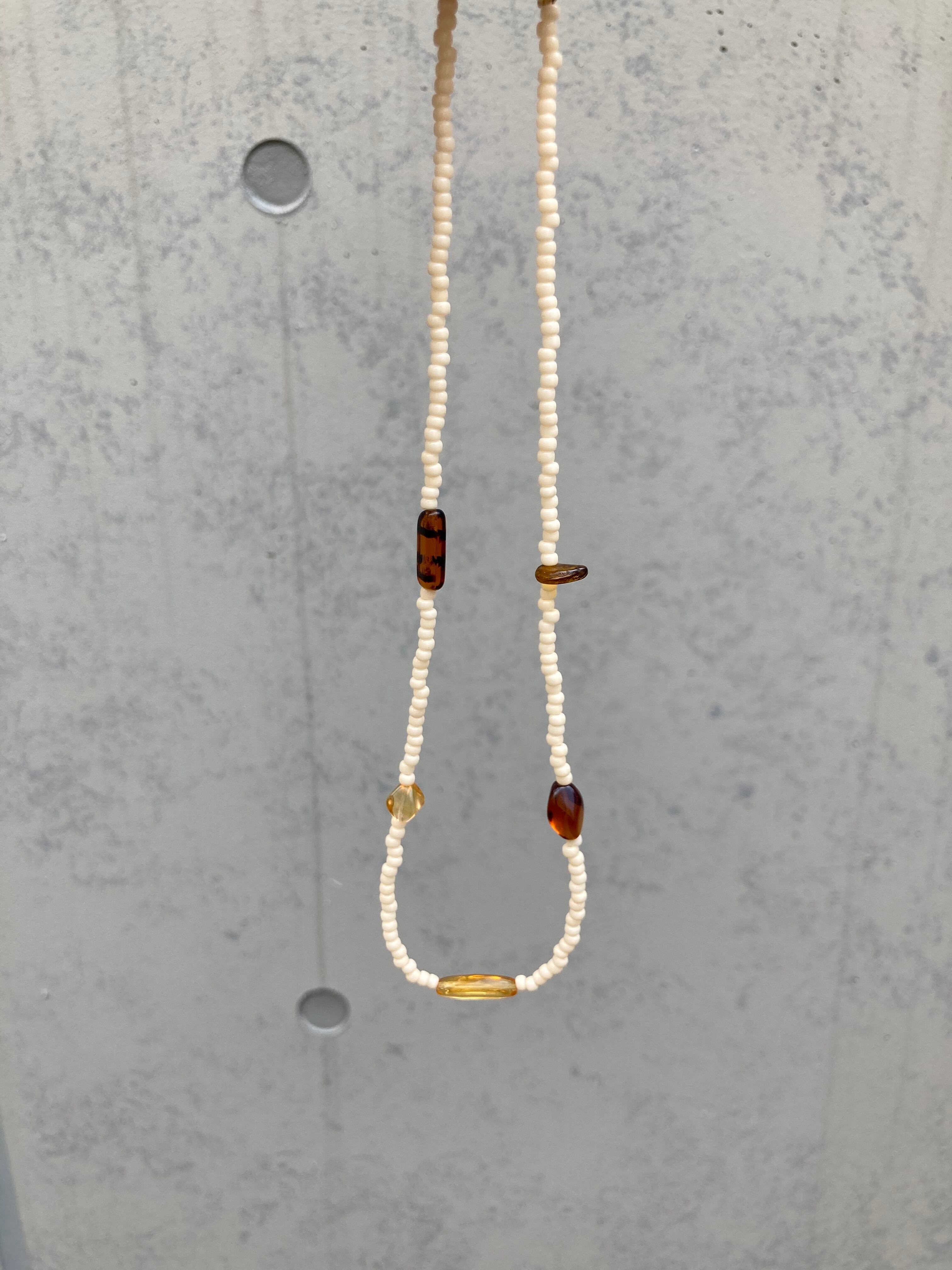 ネックレスO(グラスビーズ/ブラウン+ビーズ/オフホワイト)
