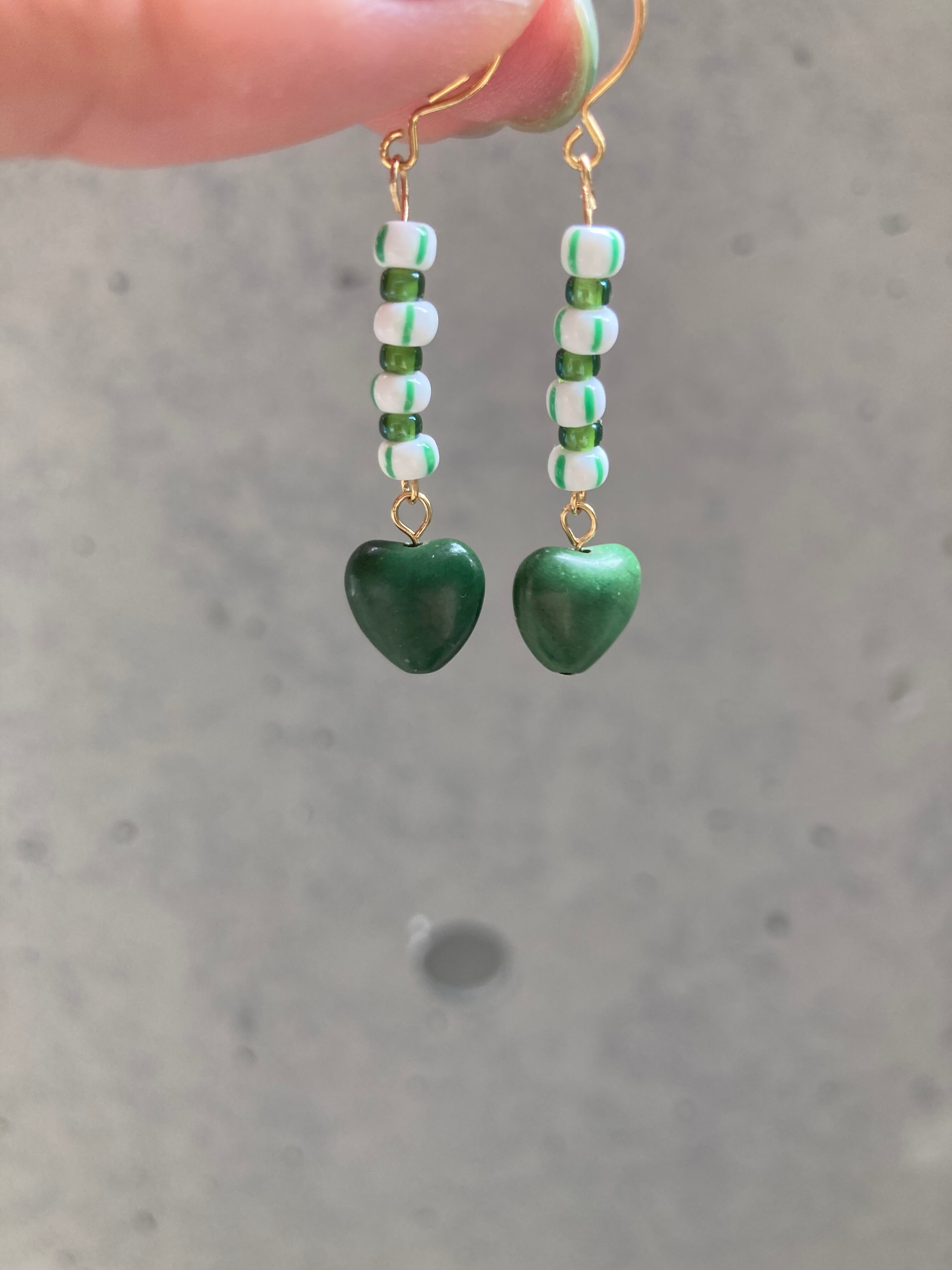 ハート型グリーンストーンをポイントにビーズもグリーン系でまとめました。