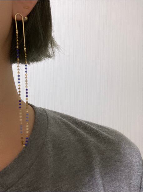 ブルー系のビーズチェーンをモービルピアスと合わせました。