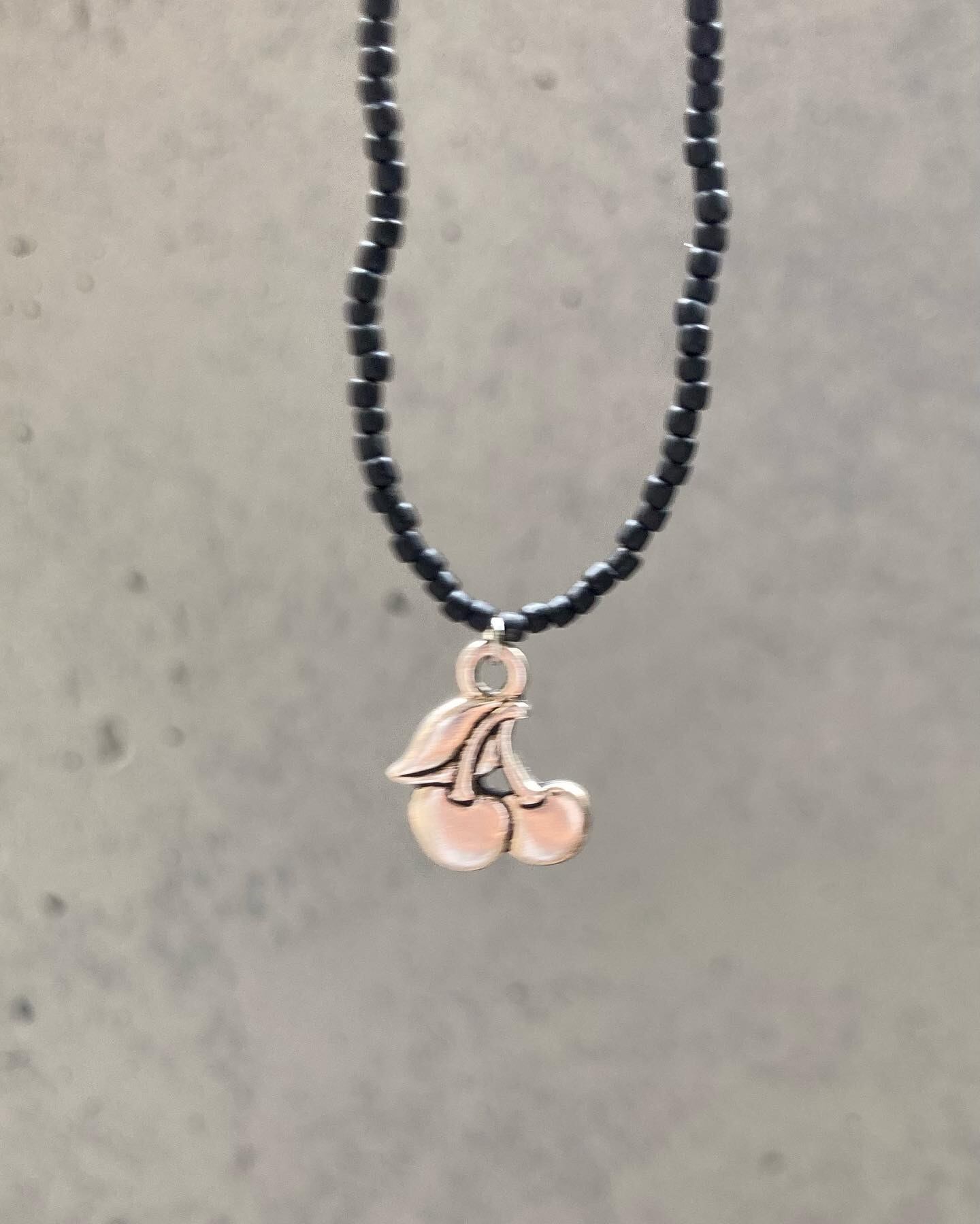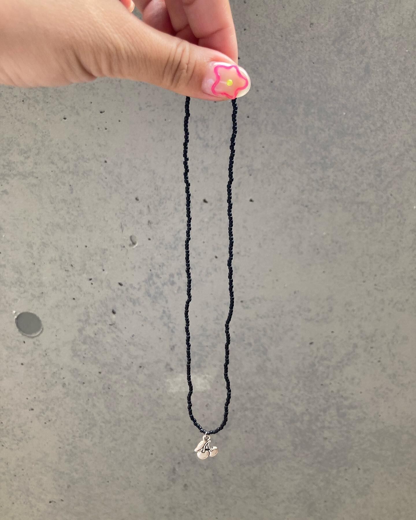 ネックレス27(チェリーチャーム/ブラックビーズネックレス)