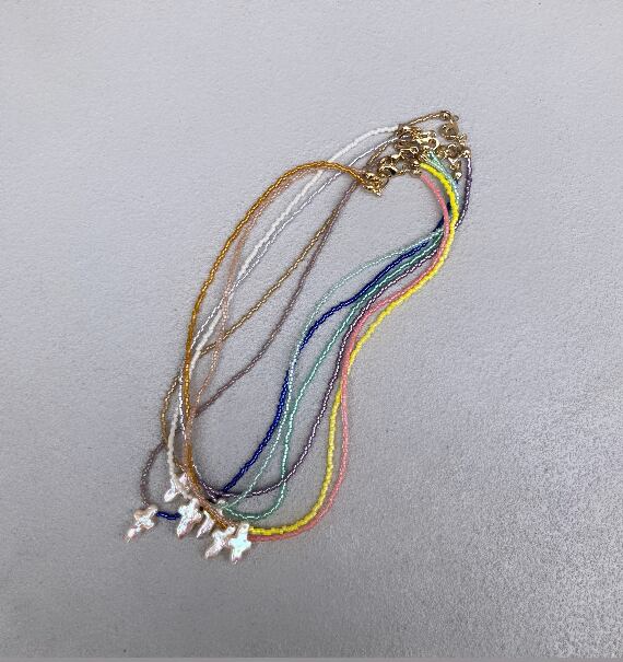 ネックレス8-B'(ネックレス8-B(バイカラービーズ/イエロー、ピンクベージュ+クロス淡水パール)